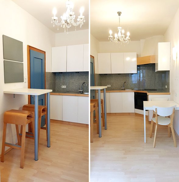 Die Wohnung ist 35 m2 groß, besteht aus Küche/Esszimmer, Wohn-/Schlafzimmer und Bad/WC. Sie ist hell (Westen), liegt zentral (Gabelsbergerstraße) und ruhig (Innenhof). Das Bad ist frisch erneuert, die Küche vom Tischler, die Heizkosten bisherigen Angaben zufolge gering (HWB 221.28, fGEE 2603), da eine zusätzliche Decke zur Dämmung eingezogen wurde, Fenster und Eingangstüre neu und dicht sind, ein verschließbarer Laubengang die Wohnung im Winter zusätzlich schützt.