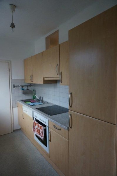 Bett, Kasten und Schreibtisch sind vorhanden, Küche mit Geschirrspüler, Gemeinschaftsraum 18m², Bad mit Dusche. WC getrennt, Kellerabteil.