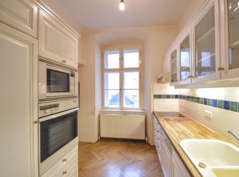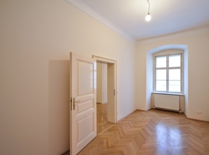 Diese ca. 64 m² große 2-Zimmer-Wohnung befindet sich im 2. Liftstock des stilvollen Palais Esterházy. Der Boden in den Wohn- und Schlafräumen wurde mit Buchenparkett ausgestattet, in den Nassräumen wurden schöne Fliesen verlegt und an den Decken wurden teilweise moderne Spots angebracht.