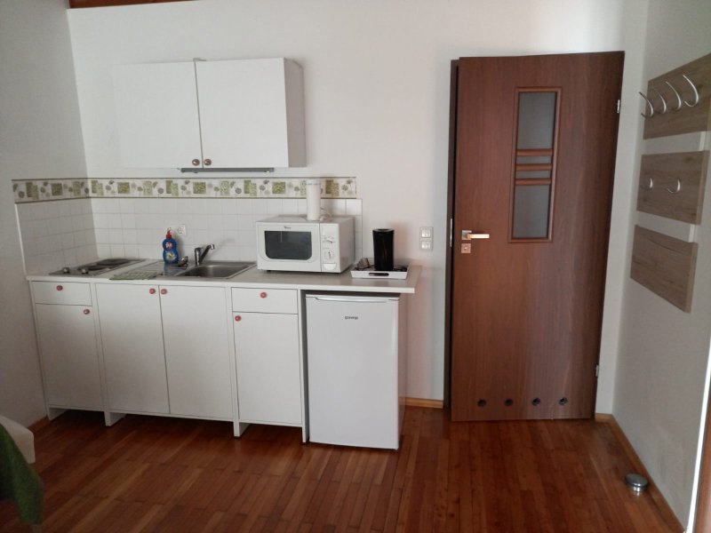 Neuerrichtete Komfortzimmer mit Küchenblock, WLAN, TV und Badezimmer mit Dusche und WC.