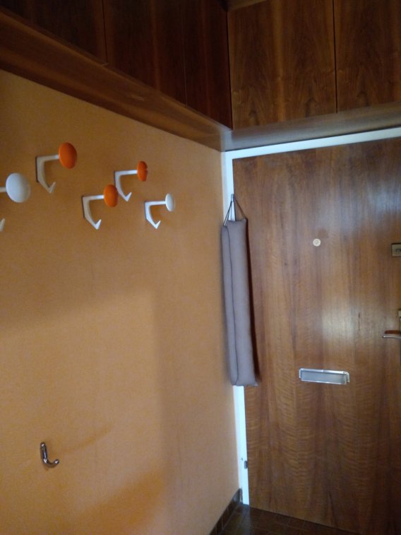 Die Wohnung ist mit Einbaumöbel ausgestattet, die den verfügbaren Raum ideal ausnützen und so eine Menge Stauraum bieten.