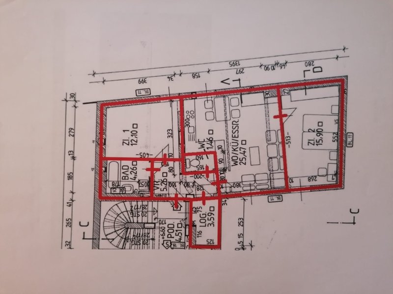 Die Wohnung liegt im 2. Stock ohne Lift und bietet sich optimal als 2er WG an, da sie zwei getrennt begehbare Zimmer hat.
