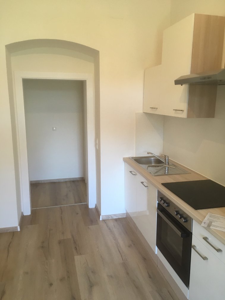 Die Kücheneinrichtung besteht aus Kühlschrank mit Gefrierfach, Dunstabzug, E-Herd mit Ceranfeld und Backrohr. Die Küche und ein sehr geräumiger Einlagerungsraum sind separat anzumieten; der dafür anfallende Mietbetrag wurde im in dieser Anzeige angegebenen Gesamtmietbetrag bereits berücksichtigt.