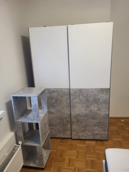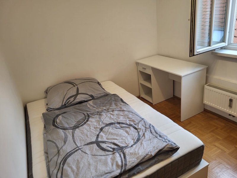 Das Zimmer (ca. 10 m²) ist voll möbliert (Bett, kaum benützte Matratze, Schreibtisch, Lampe, Kleiderschrank) und kann bei Bedarf vom Vormieter für € 300 übernommen werden, wie es auf den Bildern zu sehen ist. Ansonsten ist das Zimmer zwar etwas kleiner, aber sehr gemütlich, ruhig und hat alles, was man braucht. Das Beste an der Wohnung ist das große Wohnzimmer (25 m²). WLAN ist natürlich vorhanden.