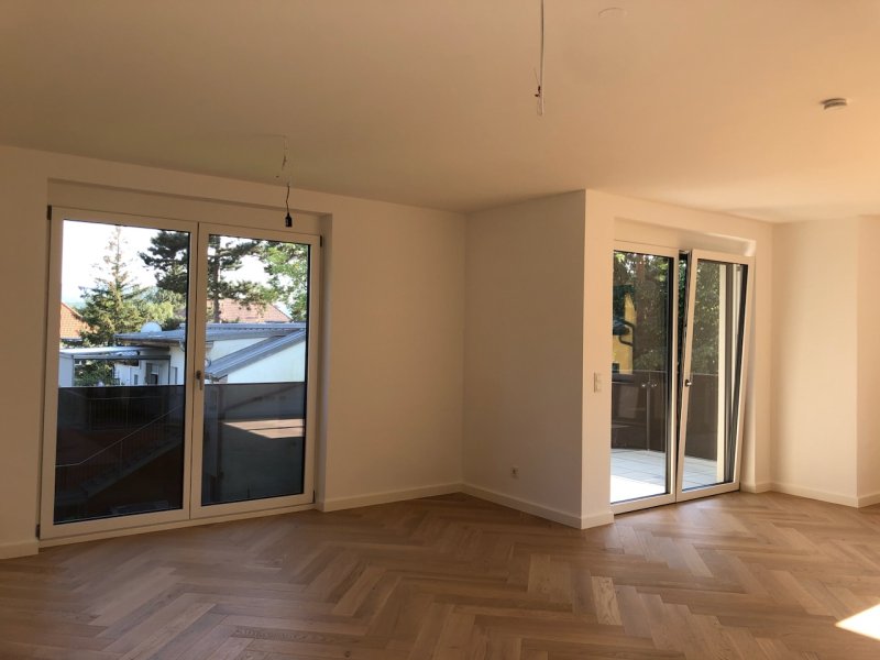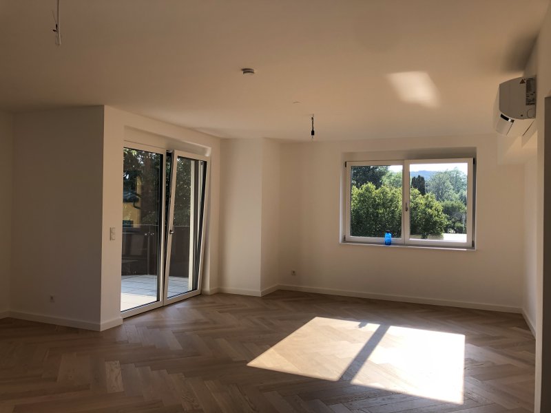 Das große 41m2 Wohnesszimmer schaut richtig Süd-Westen und hat Zugang zum Balkon.