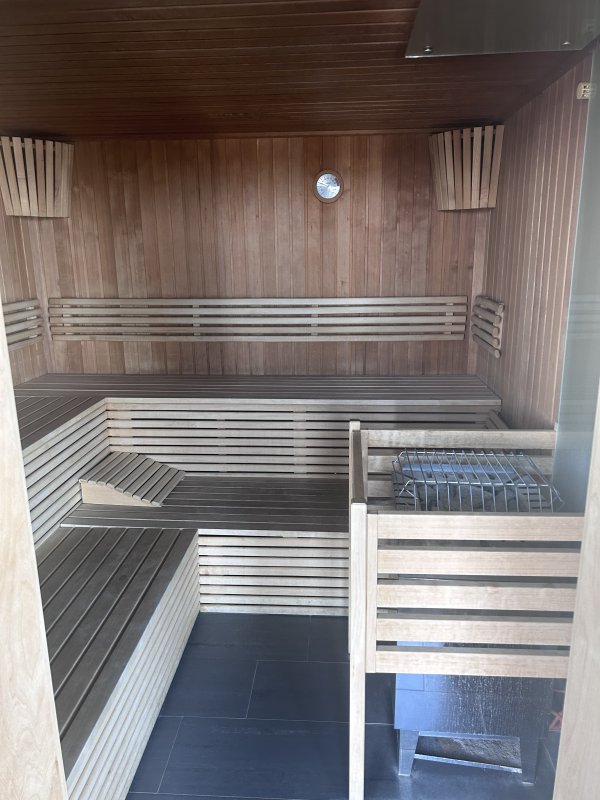 Im 2. Stock befindet sich ein Fitnessraum, Sauna und Infarotkammer.