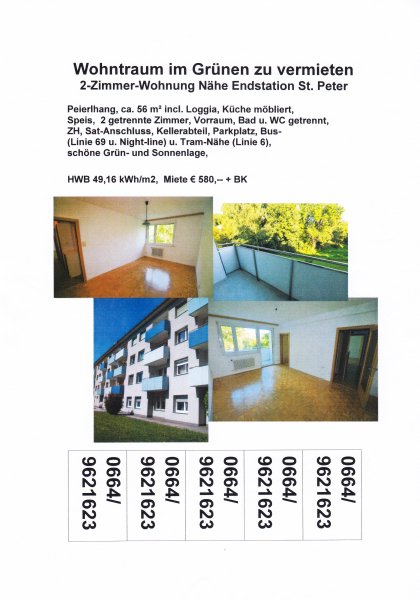 Graz-St. Peter, Peierlhang, ca 56m2 incl. Loggia im 1. Stock, Küche möbliert,