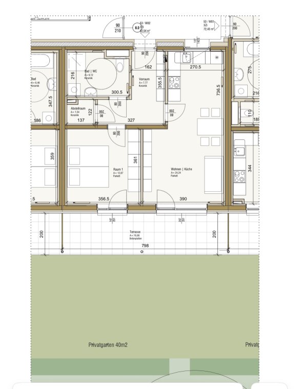 Freie Wohnung ab 01.06. im Neubau Reininghausgründe, Quartier 7 (zweigeschossiges Gebäude). Die Wohnung ist Zweizimmerwohnung, hat einen Garten von 40m2, Miete inkl. Heizung und Heizung 770 €, Strom 35 €, Kaution 3800 €. Es kommt ohne Küche, Ablöse für den Zaun, Fliesen in der Küche und evtl. ein paar Möbelstücken ca. 400 €, nach Absprache. Wir sind vor drei Jahren eingezogen, Erstbezug. Tiefgarage kann monatlich um ca. 60/70€ angemietet werden. Große Keller vorhanden.