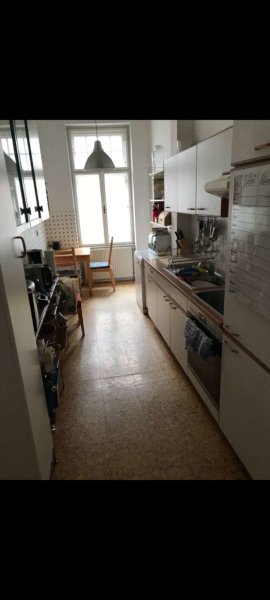 Das Altbau-WG-Zimmer hat ein großes Fenster und eine dicke Wand zum Nebenraum. Möbelierung (Bett, Kasten, Regal, Tisch) kann für 500€ übernommen werden. Die Wohnung liegt in einer ruhigen Gasse nahe verschiedener Öffi-Stationen, es gibt auch 4 Supermärkte, Geschäfte, Restaurants und Parks in 5 min Fußweg Umkreis.