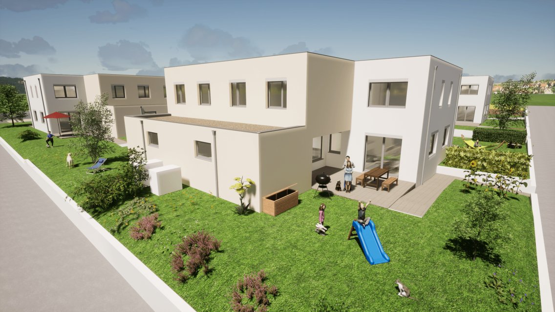 Wir freuen uns, Ihnen unser neuestes Projekt in Müllendorf, in der Steinzeile, vorstellen zu dürfen. Hier entstehen vier moderne Quattrohäuser, die jeweils über eine großzügige Wohnnutzfläche von etwa 122 m² verfügen. Jede Einheit wird durch eine großzügige Terrasse und eine einladende Loggia ergänzt, während der Garten den zukünftigen Bewohnern eine wunderbare Rückzugsmöglichkeit bietet.