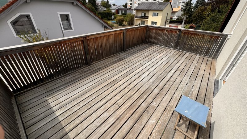 Neu Renovierte helle Dachgeschosswohnung mit riesigen Balkon und Parkplatz in ruhiger Siedlungslage mitten in Wels nur wenige Minuten vom Zentrum entfernt Nahversorger sind auch zu Fuß erreichbar .