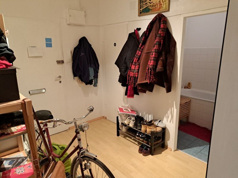 Vorraum, Wohnschlafzimmer mit Ausgang zum Balkon, separate Küche mit Küchenzeile samt Geräten (außer Kühlschrank ) und Essplatzmöglichkeit, Bad mit Wanne, separate Toilette.