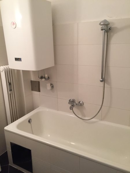 Vorraum, einem Bad mit Badewanne und einer separaten Toilette.