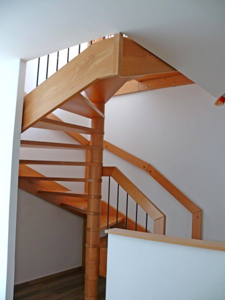 Die Holzwendeltreppe, die die beiden Ebenen verbindet, verleiht der Wohnung einen besonderen Charakter. Oben finden Sie ein großes Schlafzimmer, daneben befindet sich ein kleines Schlafzimmer oder Arbeitszimmer, beide sind mit Parkettböden und Dachfenster mit integriertem Sonnenschutz ausgestattet. Das Badezimmer/WC verfügt über Badewanne, Boiler und Waschmaschinenanschluss. Einfach zu erreichendes, ebenerdiges Kellerabteil.