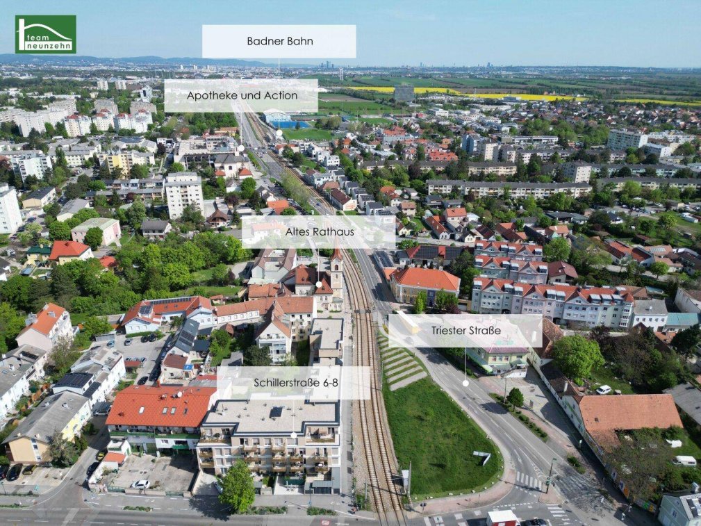 Moderne Wohnungen und Büro-/Geschäftsflächen in Wiener Neudorf!In zentraler Lage von Wiener Neudorf erwartet Sie ein fertiggestelltes Neubauprojekt mit stilvoll ausgestatteten Wohnungen und flexibel nutzbaren Büro- und Geschäftsflächen zur Vermietung. Die Liegenschaft überzeugt durch moderne Architektur, hochwertige Ausstattung und eine ausgezeichnete Anbindung an Wien sowie das südliche Umland.Ausstattung im Überblick:Moderne Einbauküchen (im Mietpreis inkludiert)3-fach Isolierverglaste Fenster für optimalen Schall- und WärmeschutzAußenliegender, manuell bedienbarer SonnenschutzEdler Parkettboden in den WohnbereichenFreiflächen je nach Einheit: Balkon, Loggia, Terrasse oder EigengartenKomfortabler Aufzug in alle StockwerkeAngenehme Fußbodenheizung über FernwärmeKellerabteil zu jeder EinheitFahrrad- und KinderwagenabstellraumTiefgaragenstellplätze direkt im Haus (optional anmietbar)Wohnung Bauteil B+C Top 20Ab sofort steht diese gepflegte 3-Zimmer-Wohnung mit ca. 60 m² Wohnfläche zur Vermietung. Die Wohnung überzeugt durch eine funktionale Raumaufteilung sowie zwei Terrassen, die zusätzlichen Wohnkomfort bieten.Raumaufteilung:Vom Vorraum aus gelangen Sie direkt in die offene Wohnküche mit Zugang zur ersten Terrasse, die in den ruhigen Innenhof ausgerichtet ist – ideal für gemütliche Stunden im Freien.Ein Flur führt Sie weiter zum Badezimmer mit Dusche, WC und Waschmaschinenanschluss sowie zu den zwei Schlafzimmern. Eines der Schlafzimmer bietet den Zugang zur zweiten Terrasse, die zusätzlichen privaten Außenraum schafft.Die wichtigsten Merkmale:Ab sofort beziehbar3 Zimmer, ca. 60 m² WohnflächeZwei Terrassen (eine davon in den Innenhof)Offene Wohnküche mit Zugang zur TerrasseBadezimmer mit Dusche, WC und WaschmaschinenanschlussZwei helle SchlafzimmerRuhige Lage mit optimaler RaumaufteilungHaben wir Ihr Interesse geweckt? Wir freuen uns auf Ihre Anfrage und organisieren gerne einen Besichtigungstermin!Mietkosten:monatliche Mietkosten: € 1.251,46 (inkl. BK und USt.)Kaution: 4 BruttomonatsmietenMietvertragserrichtungsgebühr: € 350,00 zzgl. 20% USt.Bei dem angeführten Mietpreis handelt es sich um eine Kaltmiete, somit sind sämtliche Energiekosten wie Warmwasser-, Heiz- und Stromkosten nicht inkludiert.Lage & Infrastruktur:Die Liegenschaft Schillerstraße 6–8 profitiert von einer ausgezeichneten Lage nahe der Shopping City Süd (SCS) und der Südautobahn (A2). Mit der Badner Bahn erreichen Sie bequem die Wiener Innenstadt oder Baden.Zahlreiche Nahversorger wie BILLA, HOFER, Action und dm sind in wenigen Gehminuten erreichbar. Darüber hinaus bietet die Umgebung ein vielfältiges Angebot an Restaurants und Freizeitmöglichkeiten.Freizeit & Naherholung:Die Umgebung bietet zahlreiche Möglichkeiten für Freizeit und Erholung im Grünen. In unmittelbarer Nähe laden der Gemeindeteich, Erikateich und Figurteich zu Spaziergängen, sportlichen Aktivitäten und entspannten Stunden im Freien ein. Ergänzt wird das Angebot durch den weitläufigen Schlosspark Laxenburg, der sowohl mit dem Auto als auch mit öffentlichen Verkehrsmitteln bequem erreichbar ist und zu ausgedehnten Spaziergängen, Picknicks und kulturellen Ausflügen einlädt.Ihre Vorteile im Überblick:Modernes, fertiggestelltes Wohn- und GeschäftsprojektHochwertige Ausstattung & durchdachte GrundrisseAttraktive Lage mit perfekter InfrastrukturTiefgaragenplätze direkt im HausVielfältige Freizeit- und Erholungsmöglichkeiten im UmfeldInformieren Sie sich jetzt über verfügbare Einheiten und vereinbaren Sie einen Besichtigungstermin!Energieausweis:Der Heizwärmebedarf 31,13 kWh/m²a entspricht der Klasse B.Für Fragen bzw. Besichtigungen steht Ihnen Frau Marija Ivanov sehr gerne unter [E-Mail-Adresse entfernt] sowie unter [Telefonnummer entfernt] zur Verfügung.Wir weisen darauf hin, dass zwischen dem Vermittler und dem zu vermittelnden Dritten ein familiäres oder wirtschaftliches Naheverhältnis besteht.Der Immobilienmakler erklärt, dass er – entgegen dem in der Immobilienwirtschaft üblichen Geschäftsgebrauch des Doppelmaklers – einseitig nur für den Vermieter tätig ist."Leben braucht Raum" * T19-RE Real Estate GmbH & Co KG * www.teamneunzehn.atDoppelmaklerWir werden als Immobilienmakler kraft bestehenden Geschäftsgebrauchs als Doppelmakler tätig und haben sohin beide Seiten des Vertrages (Verkäufer-Käufer, Vermieter-Mieter) zu unterstützen.Wirtschaftliches NaheverhältnisEs wird bekannt gegeben, dass folgendes wirtschaftliches Naheverhältnis zwischen der teamneunzehn-Gruppe und dem Verkäufer/der vermietenden Partei besteht: ständige und dauerhafte Beauftragung mit der Vermittlung des bestehenden ImmobilienportfoliosHaftungserklärung zum InseratIrrtum und Änderungen vorbehalten! Sofern es sich bei Bildern um Visualisierungen handelt, können Abänderungen zur tatsächlichen Ausführung resultieren. Wir weisen ausdrücklich darauf hin, dass das auf Fotos oder Visualisierungen ersichtliche Mobiliar bzw. Inventar nicht Bestandteil des inserierten Preises ist.