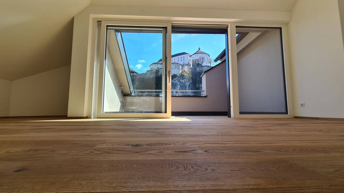 Beim Betreten der Wohnung empfängt Sie ein schönes Foyer, von dort gelangen Sie in das Wohnzimmer kombiniert mit offener Küche mit einmaligen Blick auf die Festung Kufstein, die direkt vor Ihnen gegenüber dem Inn liegt. Genießen Sie vom sonnigen Balkon den herrlichen Ausblick auf den Inn, die Festung, die Altstadt sowie die umliegenden Berge. Die moderne Küche ist mit besten Geräten versehen. Das Wohnzimmer ist kombiniert mit einem Essbereich. Weiters gibt es noch ein WC neben dem Eingangsbereich. Über das Schlafzimmer gelangt man in das Badezimmer mit begehbarer Dusche.
