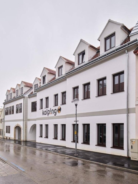 Dafür musste das alte Kolpinghaus und das Nebengebäude, eine ehemalige Tischlerei, abgerissen werden. Die Grundsubstanz des Gebäudes aus dem 16. Jahrhundert bleibt jedoch erhalten; ein Torbogen und das denkmalgeschützte Kreuzgewölbe werden in das neue Bauwerk integriert. Mit klassischen Baumaterialien, Kastenfenstern sowie einem Satteldach wird sich das neue Gebäude in das Ensemble von denkmalgeschützten, historischen Bauwerken in der Joseph Haydn Gasse perfekt integrieren.