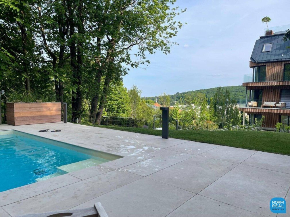 Willkommen in Ihrem neuen Zuhause in der begehrten Lage des 19. Bezirks von Wien! Diese exklusive und neuwertige 4-Zimmer-Wohnung vereint modernen Komfort mit zeitloser Eleganz und bietet Ihnen auf großzügigen 183 m² alles, was das Herz begehrt.Bereits beim Betreten der Wohnung spüren Sie die lichtdurchflutete Atmosphäre, die durch die offenen Dielen und die hohe Decke entsteht. Die Fußbodenheizung sorgt für ein wohlfühlendes Raumklima und lässt auch kalte Wintertage im neuen Licht erstrahlen.Im Sommer können Sie durch die zugfreie Kühlung in der Wohnung der Hitze entkommen. Der herrliche an den Wienerwald angrenzende Gemeinschaftsgarten mit Pool ist auch an heißen Sommertagen ein wunderbarer Rückzugsort.Die Wohnung befindet sich in der 2. Etage eines modernen Gebäudes, das mit einem Personenaufzug bequem erreicht werden kann. Von hier aus genießen Sie einen beeindruckenden Fernblick, der Ihnen jeden Tag die Schönheit der Wiener Umgebung näherbringt. Die großzügigen Fensterflächen ermöglichen zudem einen herrlichen Blick ins Grüne, der zur Entspannung einlädt.Ein Highlight dieser Wohnung sind die drei Balkone, zwei davon südseitig mit Stadtblick und einer nordseitig zum Wienerwald ausgerichtet. Diese bieten Ihnen zahlreiche Möglichkeiten, die frische Luft und die Ruhe der Umgebung zu genießen. Ob beim Frühstück im Freien oder beim entspannten Abendglas Wein – hier finden Sie den perfekten Ort, um die Seele baumeln zu lassen.Die durchdachte Raumaufteilung bietet Ihnen eine optimale Nutzung der Fläche. Mit vier großzügigen Zimmern stehen Ihnen vielfältige Gestaltungsmöglichkeiten für Wohn-, Arbeits- oder Gästezimmer zur Verfügung. Die drei eleganten Bäder und vier WCs garantieren Ihnen und Ihren Gästen jederzeit höchsten Komfort und Privatsphäre.Für zusätzlichen Komfort sorgen zwei Stellplätze, die Ihnen das Parken in der Stadt erleichtern. Die moderne Architektur und das Flachdach verleihen der Immobilie nicht nur einen einzigartigen Charakter, sondern tragen auch zu einem nachhaltigen Wohngefühl bei.Die ausgezeichnete Verkehrsanbindung durch Buslinien macht das Pendeln in die Innenstadt oder zu anderen Stadtteilen besonders angenehm. Zudem befindet sich eine Schule in unmittelbarer Nähe, was die Lage besonders für Familien attraktiv macht.Diese Wohnung ist nicht nur ein Ort zum Wohnen, sondern ein Lebensraum, der höchsten Ansprüchen gerecht wird. Lassen Sie sich von diesem einzigartigen Angebot überzeugen und vereinbaren Sie noch heute einen Besichtigungstermin. Ihr neues Zuhause in Wien wartet auf Sie!Der Immobilienmakler erklärt, dass er – entgegen dem in der Immobilienwirtschaft üblichen Geschäftsgebrauch des Doppelmaklers – einseitig nur für den Vermieter tätig ist.