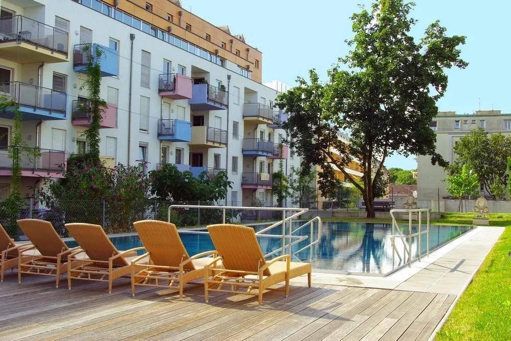 Voll Möbliertes Studioapartment in Wohnanlage Orchideenpark mit Garten und Terrasse - Pool, Fitness, Sauna, Concierge, zentrale Lage in 1190 Wien
