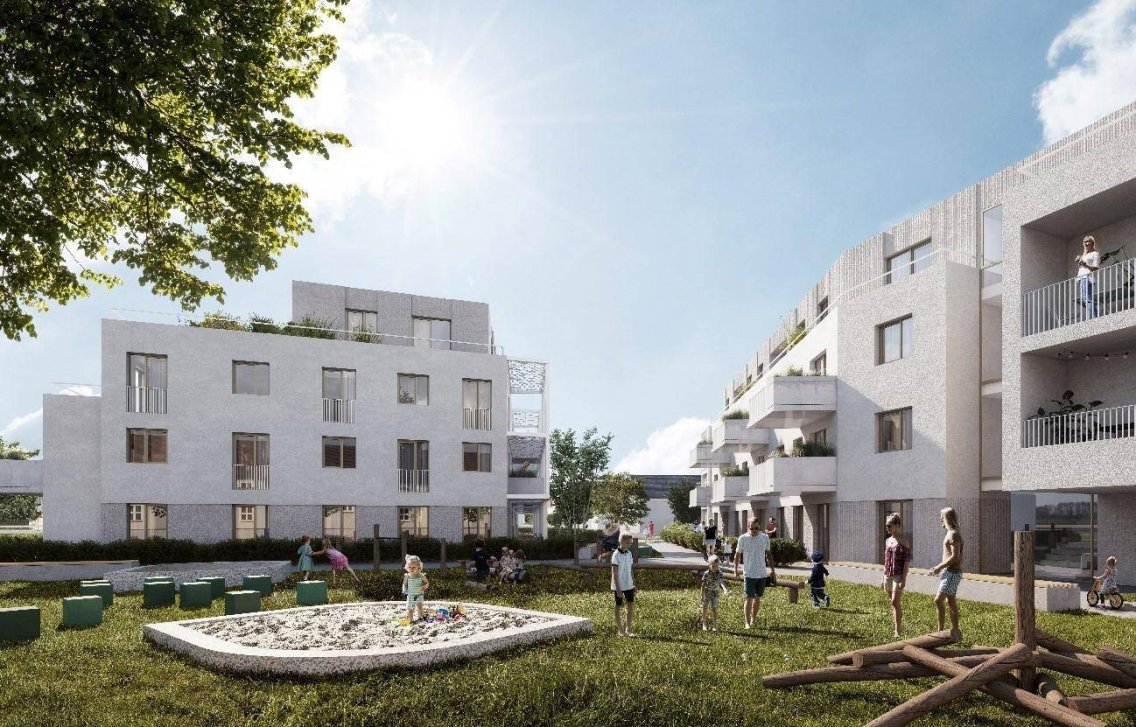 Entstehen wird ein attraktives Wohngebiet, bestehend aus 3 freistehenden Baukörpern mit insgesamt 102 geförderten Mietwohnungen ohne Kaufoption und 137 Garagenplätzen.