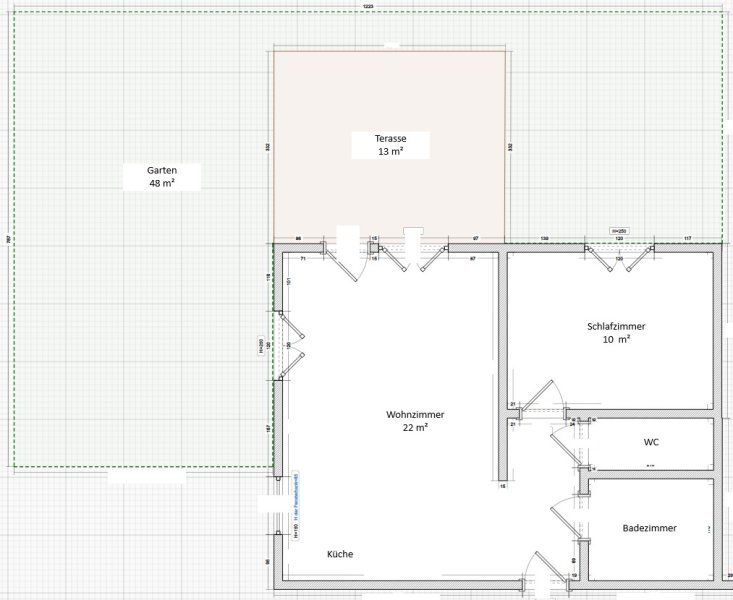 Gartenfläche: 48 m² mit überdachter Terrasse