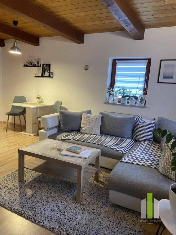 Die Wohnung ist in einem 4-Parteien Haus über eine etwas steilere Treppe gut zugänglich und hat eine geräumige WohnEssKüche (möbliert), ein großes Schlafzimmer, kleines Bad mit neuwertiger Dusche und WC und Waschmaschinenanschluß !