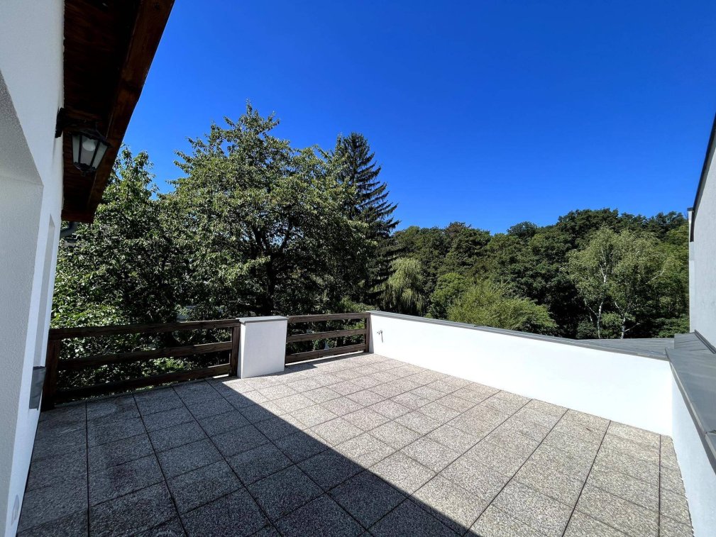 Auf rund 114 m² Wohnfläche und einer 33 m² großen Terrasse genießen Sie entspannte Stunden mit schönem Grünblick. Dank eigenem Zugang über eine Treppe gibt es keine direkten Nachbarn – im Haus befinden sich nur zwei Einheiten.