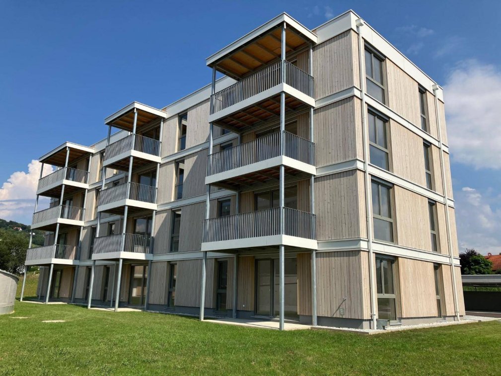 In der Josef-Lind-Straße in Hartberg entstanden in zwei Bauabschnitten 44 geförderte Mietwohnungen. Die ersten 26 Wohnungen wurden im Herbst 2024 übergeben.