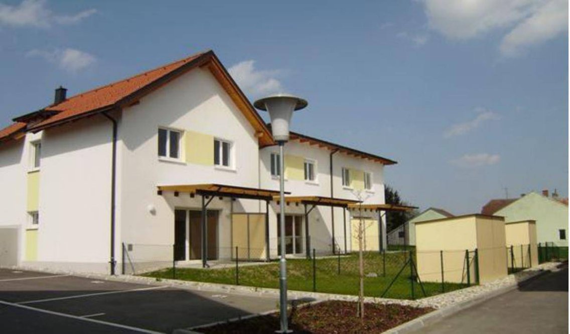 Die 6 neu errichteten Reihenhäuser bestehen jeweils aus Keller, Erd- und Obergeschoss und wurden in Niedrigenergiebauweise mit kontrollierter Wohnraumlüftung und zentraler Heizung (Hackschnitzel) errichtet. Jedes Reihenhaus hat 2 PKW- Abstellplätze im Freien und einen Eigangarten.