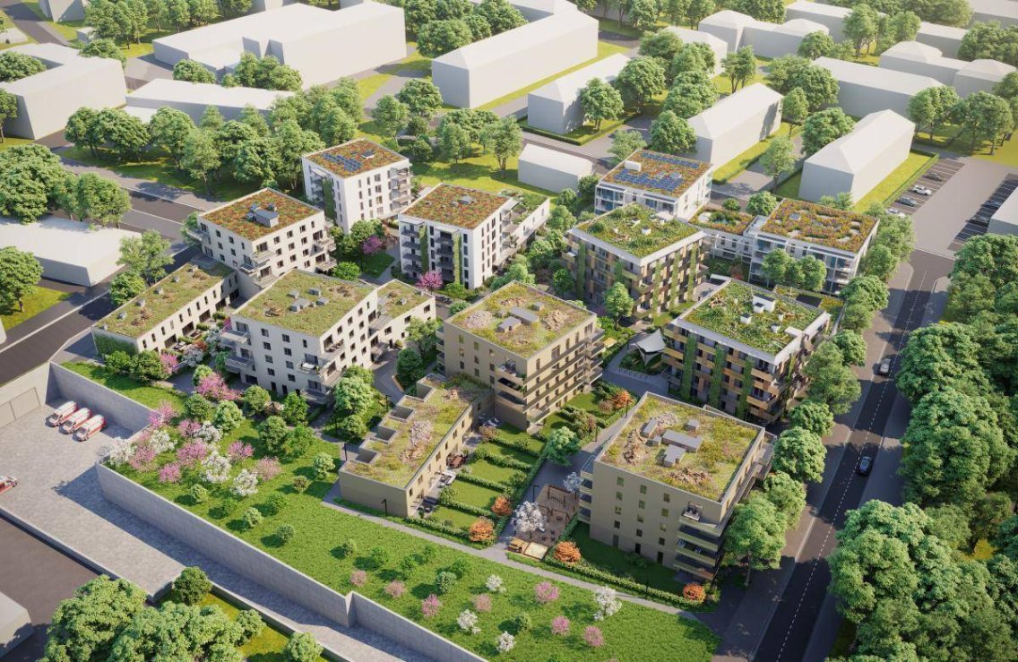 BADEN: WOHNEN MIT DEN 5 ELEMENTEN. Im Ortsteil Leesdorf, nördlich des Thermenklinikums liegt dieses Wohnareal mit einem großzügigen und vielfältigen Grün- und Freiflächenangebot. Die Wohnhäuser werden nach ökologischen Kriterien in Niedrigstenergiehausqualität errichtet. Das Wohnquartier umfasst 178 Wohnungen sowie 28 Maisonette-Wohnungen. Die Gebäude sind auf fünf Baufelder aufgeteilt, wobei jedes Baufeld thematisch einem Element (Aqua, Terra, Ignis, Lignum, Metallum) gewidmet ist. Daraus leitet sich auch der Quartiersname „5e Baden – Spitalsgärten“ ab. Neben der Nutzung erneuerbarer Energieträger erfolgt auch eine Bauteilaktivierung der Gebäude zur Temperaturregelung im Sommer und im Winter. Ein durchdachtes Grün- und Freiraumkonzept sowie begrünte Dachflächen tragen zum Erhalt der Biodiversität und einem guten Mikroklima im Quartier bei. Ebenso werden einzelne Fassadenbereiche begrünt. Das Quartier ist oberirdisch autofrei – die Parkflächen befinden sich in der Tiefgarage.