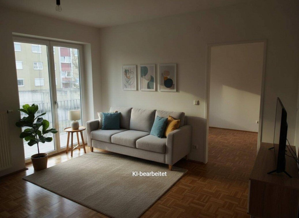 Die dargestellten Möbel sind KI-generiert. Die Wohnung wird unmöbliert übergeben, und die im Bild gezeigten Möbel gehören nicht zum Leistungsumfang.Wir weisen darauf hin, dass zwischen dem Vermittler und dem zu vermittelnden Dritten ein familiäres oder wirtschaftliches Naheverhältnis besteht.