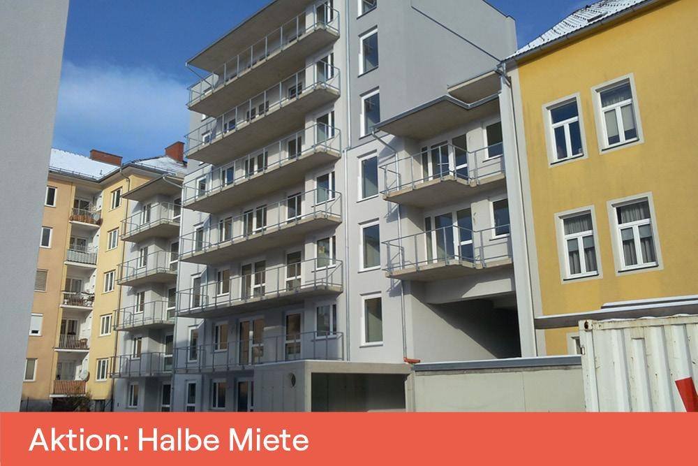 Da es sich bei der Wohnung um eine Aktion handelt, bezieht sich der monatliche Mietpreis laut Inserat (=halbe Miete) auf die ersten 6 Monate. Danach wird der volle Mietpreis in der Höhe von dzt. ca. € 944,-- verrechnet. Es besteht ein einjähriger Kündigungsverzicht.