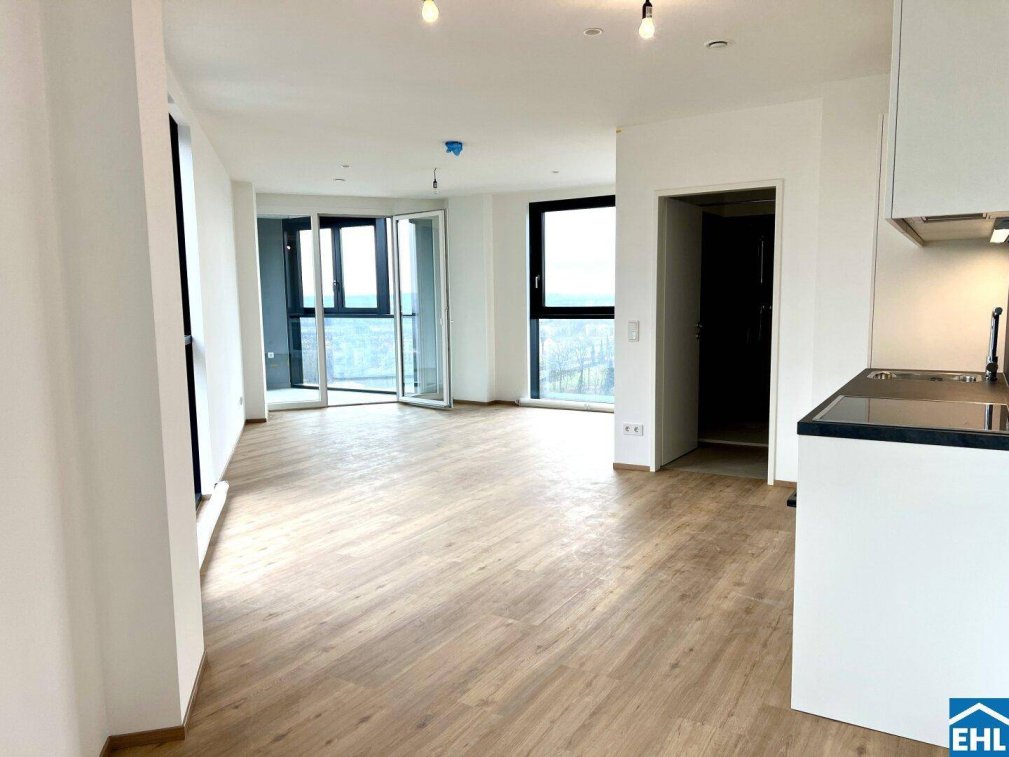 Jede Wohnung ist mit einer hochwertigen Einbauküche, Design-Vinylboden, Fußbodenheizung und einer Loggia ausgestattet.Arbeiten, studieren, entspannen – im High Five ist alles möglich.