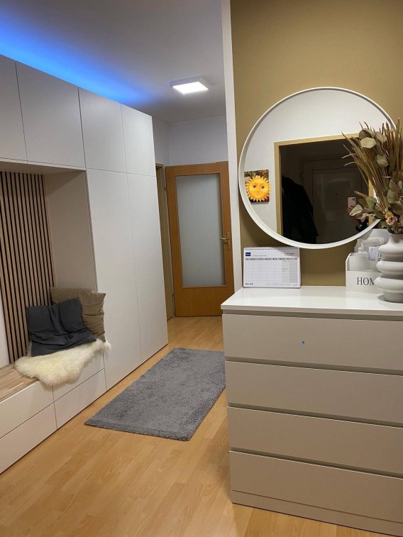 Die Wohnung verfügt über ein Badezimmer mit Badewanne und eine Einbauküche. Der 10 m² große Balkon bietet zusätzlichen Wohnraum im Freien. Die Räumlichkeiten sind mit Parkettboden ausgestattet und werden mit Fernwärme beheizt. Zusätzlichen Stauraum bietet ein Kellerabteil.