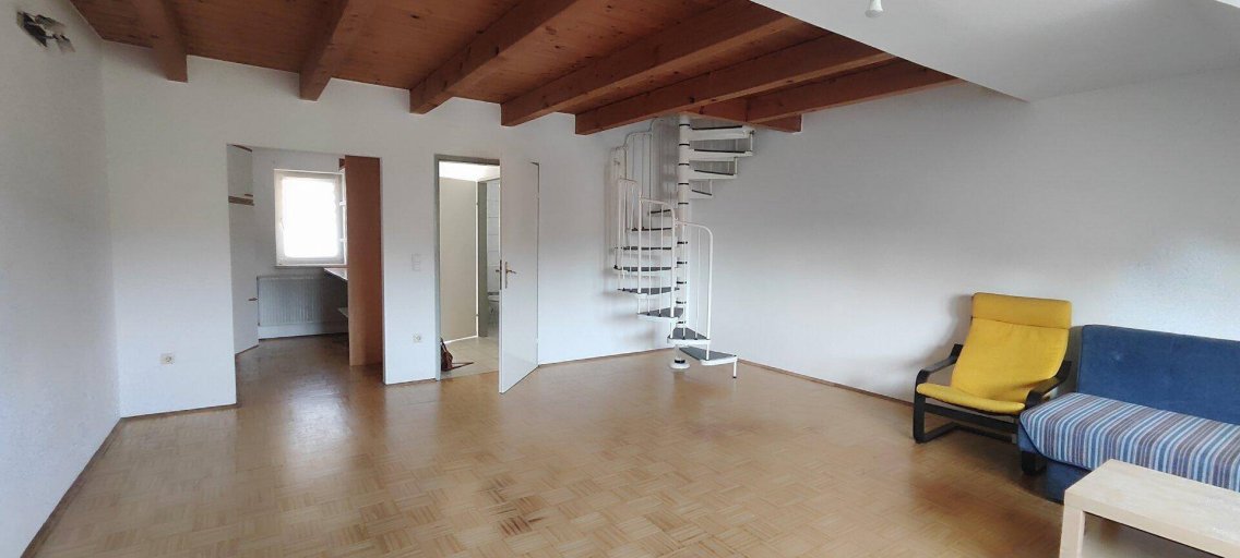 Diese charmante Wohnung besticht durch ihr durchdachtes Wohnkonzept und eine behagliche Atmosphäre. Die offen gestaltete Küche fügt sich nahtlos in den hellen und großzügigen Wohnbereich ein – perfekt für gemeinsames Kochen und gesellige Abende.Ein besonderes Highlight ist die elegante Wendeltreppe, die direkt vom Wohnzimmer ins Dachgeschoss führt. Dort erwartet Sie ein gemütlicher Schlafbereich, der zum Entspannen und Wohlfühlen einlädt.Ruhig wohnen – mit perfekter Anbindung: