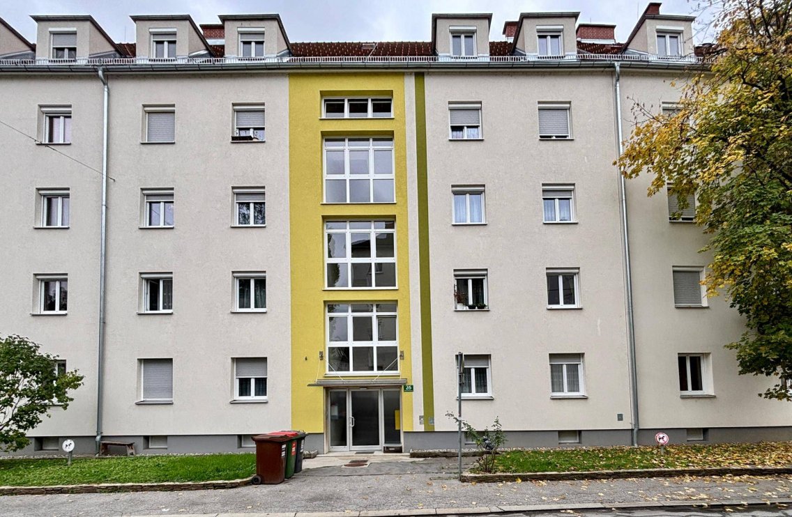 Die 3-Zimmer-Wohnung befindet sich im 4. Obergeschoss (ohne Lift) und verfügt über eine Küche (ohne Küchenblock), ein Wohnzimmer, zwei Schlafzimmer, Badezimmer mit WC und Fenster sowie über einen Vorraum. Weiters verfügt die Wohnung über ein Kellerabteil, welches zusätzlichen Stauraum bietet.