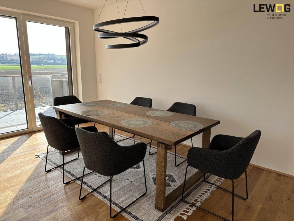 Leben am See – Moderne 4-Zimmer-Wohnung mit BalkonDiese moderne 4-Zimmer-Wohnung im letzten Obergeschoss des 2024 erbauten Wohnhauses überzeugt durch ihren durchdachten Grundriss, hochwertige Ausstattung und die Nähe zum Pichlinger See. Mit dem Lift kommen Sie bequem von der Tiefgarage in Ihre Wohnebene.Sie betreten die Wohnung vom hellen Stiegenhaus über eine kleine Diele mit Platz für eine Garderobe, von hier erreichen Sie die Sanitärbereiche, den Wohnbereich und die 3 Schlafräume.Der helle Wohn-/Essbereich mit stilvoller Landhaus-Küche lädt zum Wohlfühlen und Genießen ein. Die Küche verfügt über cremeweiße Fronten und eine Kochinsel in Richtung Essbereich. Durch den optimalen Grundriss und 2 große Glasfronten wirkt der Wohnbereich sehr geräumig. Vom Wohnbereich blicken Sie ins Grüne oder zum Pichlingersee, über zwei Glastüren betreten Sie den 22 m² großen EckbalkonDas 8 m² große Badezimmer ist mit eleganten mattweißen Fliesen, einer flachen Dusche, Badewanne, Doppelwaschtisch und Waschmaschinenanschluss ausgestattet, das separate WC verfügt über ein Handwaschbecken. Elektrische Rollläden in den Schlafräumen und Raffstores im Wohn/Essbereich sowie eine zentrale Wohnraumlüftung sorgen für Komfort und ein angenehmes Raumklima. Fliegengitter halten Insekten fern. Der Wohnbereich ist mit einem neuen Tisch und Sesseln, sowie einer Ledercouch ausgestattet - diese Möbel könnten vom Eigentümer um 3.000,- Euro abgelöst werdenDie Vermietung erfolgt vorerst befristet auf 3 Jahre, wobei der Eigentümer einen Mieter sucht, der auch gerne längfristig hier wohnen möchte.Zur Wohnung gehören ein großes Kellerabteil mit Stromanschluss sowie 2 Tiefgaragenstellplätze. Die Kosten für Strom, Wasser und Wärme werden gesondert und nach tatsächlichem Verbrauch abgerechnet.Ein besonderes Extra: In der gepflegten Außenanlage des Wohnkomplexes steht Ihnen ihr eigenes Hochbeet zur Verfügung – ideal für alle, die gerne selbst Gemüse oder Kräuter anbauen. Im Kellergeschoß finden Sie noch einen Fahrradabstellraum und einen Wäschetrockenraum für alle Bewohner dieses Hauses.Sag Hallo zu Deinem neuen Zuhause!Das Team der LEWOG freut sich über Ihre Anfrage. Besichtigungen werden gerne nach vorheriger Terminvereinbarung durchgeführt.Wir weisen darauf hin, dass zwischen dem Vermittler und dem zu vermittelnden Dritten ein familiäres oder wirtschaftliches Naheverhältnis besteht.Der Immobilienmakler erklärt, dass er – entgegen dem in der Immobilienwirtschaft üblichen Geschäftsgebrauch des Doppelmaklers – einseitig nur für den Vermieter tätig ist.