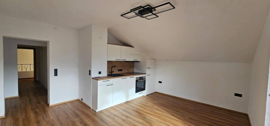 Diese charmante Dachgeschosswohnung bietet alles, was modernes Wohnen ausmacht. Der helle Wohn- und Essbereich mit stilvoller Einbauküche führt direkt auf den Balkon, von dem aus Sie einen wunderbaren Ausblick genießen können. Das Schlafzimmer mit Dachfenster schafft eine gemütliche Atmosphäre, während das moderne Badezimmer mit bodentiefer Dusche und edlen Fliesen zum Wohlfühlen einlädt.