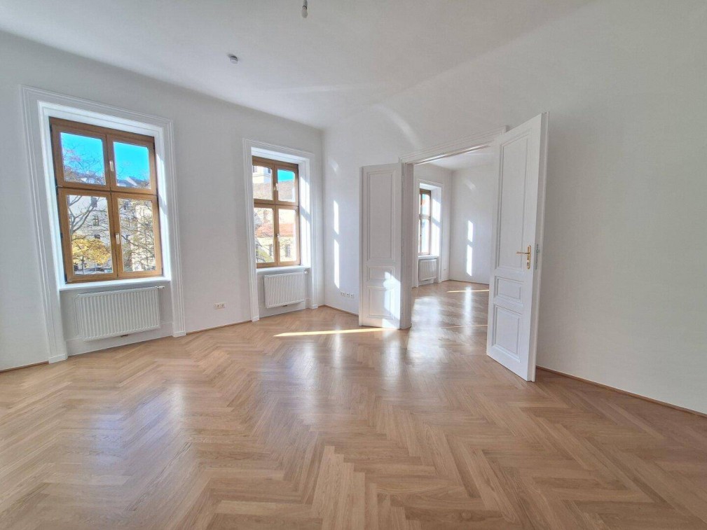 Erstbezug nach Generalsanierung: Klassische 2,5-Zimmer-Altbauwohnung in stilvollem JahrhundertwendehausZur unbefristeten Vermietung gelangt eine klassische, sanierte 2,5-Zimmer-Altbauwohnung in sehr guter, zentraler Lage des 18. Bezirks - Nähe Währinger Straße/Kutschkermarkt.Diese ca. 111,78 m² große Altbauwohnung befindet sich im 2. Liftobergeschoss eines besonders schönen und sehr gepflegten Jahrhundertwendehauses.Das Objekt besticht vor allem durch den sehr guten Gesamtzustand sowie die sehr gute Wohn-, und Infrastrukturlage.Beste öffentliche Verkehrsanbindung (40, 41, U6-Nähe) und Infrastruktur (Fußgängerzone, Währinger Einkaufsstraße, Kutschkermarkt, etc.) sind ebenfalls gegeben.360 Grad-Tour Link: https://360.feelestate.ch/view/portal/id/VZ9LZRaumaufteilung und Ausstattung:• großzügiges Vorzimmer