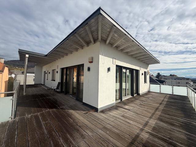 Die Wohnung befindet sich im Dachgeschoss einer kleineren Wohnanlage in Villach/Lind. Sie ist in top Zustand und wird hochwertig möbliert (keine Ablöse) übergeben. Sie hat folgende Aufteilung: Vorraum, WC, Schlafzimmer mit Schrankraum und Bad/WC, Schlafzimmer mit Bad/WC, Wohn-/Essraum mit Einbauküche und Ausgang auf die große Dachterrasse mit ca. 84 m2. Die Wohnung verfügt über ein zentrales Steuerungspaneel für Licht, Lamellenjalousien und Musik. Die Beheizung erfolgt mittels Fußbodenheizung und im Wohnzimmer sorgt ein Designkaminofen zusätzlich für gemütliche Wärme. Zur Wohnung gehören ein Kellerabteil, ein Tiefgaragenplatz und ein Stellplatz im Freien. Bezug ist ab sofort möglich. HWB 35,5 kWh – Klasse B.