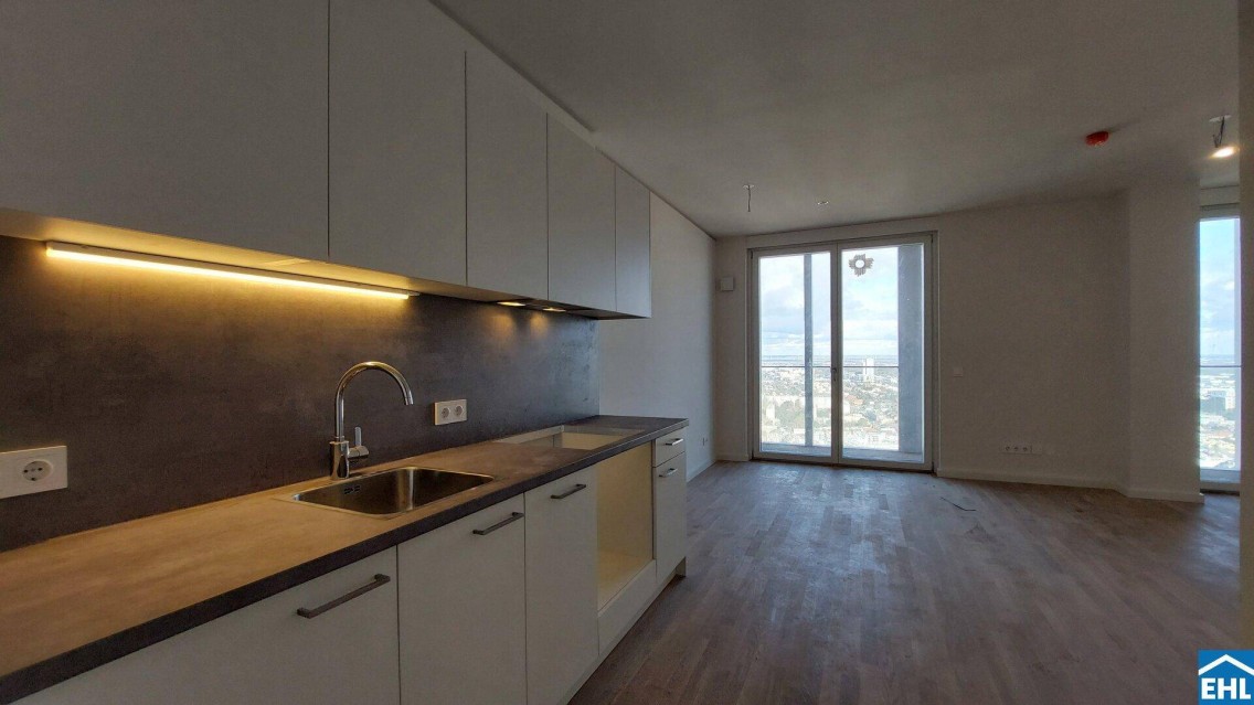 TOWER HOMES im Vienna Twentytwo - Erstbezugswohnungen bei der U1 - Rooftop-Pool, Fitnessraum & Saunabereich!In einzigartiger Lage, direkt bei der U1-Station Kagran und vis-à-vis vom Donau Zentrum, entsteht ein exklusiver, ca. 155m hoher Wohnturm mit 45 Etagen. Die insgesamt 347 Mietwohnungen bieten einen vielfältigen Wohnungsmix: von smart geschnittenen 1,5-Zimmer-Apartments ab ca. 38 m² über komfortable 2-Zimmer-Wohnungen bis hin zu großzügigen 3- und 4-Zimmerwohnungen mit bis zu ca. 80 m².Die Kombination aus moderner Architektur, weiten Glasfronten, hochwertiger Ausstattung und einem nachhaltigen, energieeffizienten Gebäudekonzept schafft ein urbanes Zuhause mit besonderem Wohnkomfort – ideal für Singles, Paare und Familien.Highlights von V2245 Etagen, ca. 155 m Höhe1,5- bis 4-Zimmer-Wohnungen mit optimalen GrundrissenErstklassige Allgemeinflächen:Rooftop-Pool mit großzügiger Terrassenlandschaft, Sitz- & LiegebereichenFitnessraum, Saunabereiche, WaschkücheJugendspielraum mit vorgelagertem KleinkinderspielplatzGemeinschaftsräume mit TerrasseFahrradraum inkl. Waschplatz & WerkbankHundewaschplatzEinlagerungsräume auf allen WohnetagenStellplätze können in der hauseigenen Tiefgarage um € 168,00 brutto angemietet werden.Eine detaillierte Übersicht anhand unseres Grundrissnavigators finden Sie hier!AusstattungDie Ausstattung überzeugt durch ein sorgfältig abgestimmtes, hochwertiges Konzept:Österreichisches Qualitätsparkett von WeitzerItalienisches Feinsteinzeug von MarazziMarken-Sanitärausstattung von Hansa, Villeroy & Boch, GeberitSicherheitstüren (WK3)Holz-Alu-Fenster mit innenliegendem SonnenschutzSmarte Gebäudetechnik - Heizen & Kühlen mittels Bauteilaktivierung/WärmepumpenGlasfaseranschluss (A1, Magenta)Video-GegensprechanlageLage & InfrastrukturDie Lage im 22. Bezirk erfüllt höchste Ansprüche an modernes, urbanes Wohnen:Direkt an der U1-Station Kagran – 11 Minuten bis zum StephansplatzGegenüber vom Donau Zentrum mit vielfältigen Shopping- & GastronomieangebotenWenige Minuten zur Alten Donau, Donauinsel und Donaupark – für Sport & FreizeitNähe zu internationalen Unternehmen, Bildungsinstitutionen und der UNO-CityBitte beachten Sie, dass es sich bei den Fotos lediglich um Musterfotos handelt!