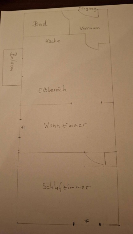 Die Wohnung wurde komplett neu renoviert. Sie besteht aus Vorraum, Badezimmer (mit Dusche und integriertem WC), Esszimmer mit vorgesehener Küchenzeile, Balkon, Wohnzimmer und Schlafzimmer (separat).