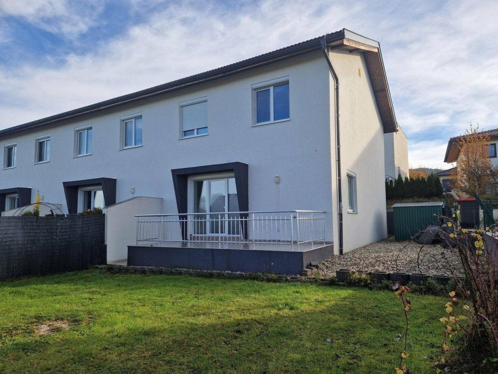 Dieses sehr gut durchdachte Reihenendhaus bietet seinen neuen Mietern einiges an Wohnkomfort und Platz. Das Erdgeschoß ist offen gestaltet und dadurch sehr hell. Vom Wohnzimmer aus gelangt man auf die ca. 14 m2 große Terrasse und weiter in den kleinen Eigengarten. Es befinden sich auch 2 Blechhütten für mehr Stauraum auf dem Grundstück. Im ersten Stock befinden sich die drei Schlafzimmer sowie ein Bad mit Wanne und WC. Perfekt abgerundet wird dieses Angebot durch die zwei Carport-Stellplätze.