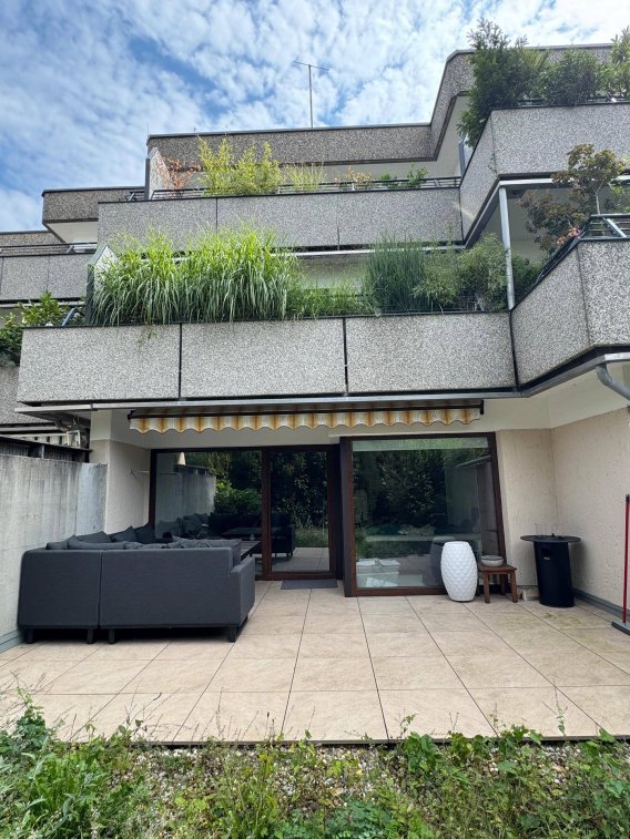 Wieder verfügbar: 1.2.-15.3.2026: Nonntal: Möblierte Designerwohnung mit 20 m² Terrasse & TG – Kurzzeitmiete 1–6 Monate!