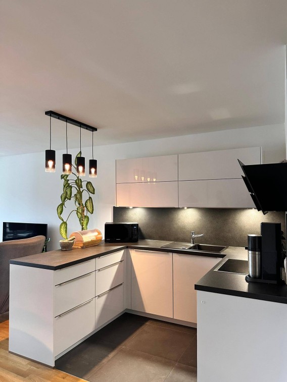• Wohn-/Esszimmer mit moderner Einbauküche