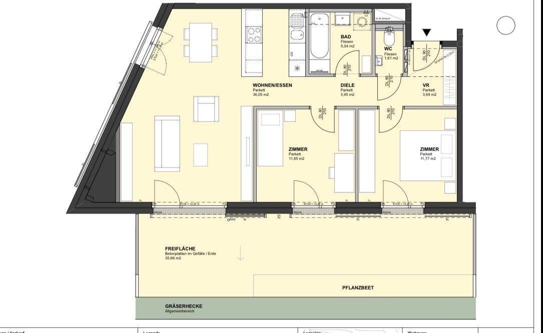 Zur Vermietung gelangt eine moderne 3-Zimmer-Wohnung mit großzügiger Wohnküche und Garten am Wonkaplatz im 22. Bezirk. Die Wohnung befindet sich im Erdgeschoss und bietet ca. 74 m² Wohnfläche sowie eine ca. 36 m² große Garten-/Freifläche, ideal zum Entspannen im Freien.