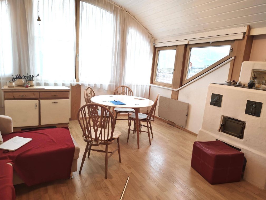 Wohnzimmer mit herrlicher Aussicht und Kachelofen