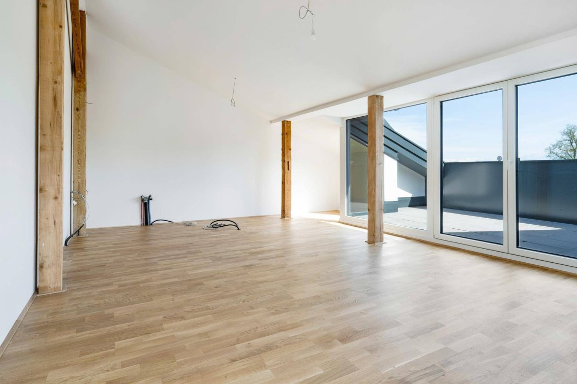 Alle Wohnräume sind in Richtung Stille-Nacht-Bezirk orientiert und bieten dadurch eine außergewöhnlich ruhige Wohnatmosphäre mit herrlichem Blick auf die Salzach und die umliegende Bergwelt.