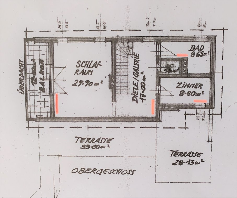 - großzügiger Schlafraum im Obergeschoss mit Zugang zum 12m² großen, überdachten Balkon
