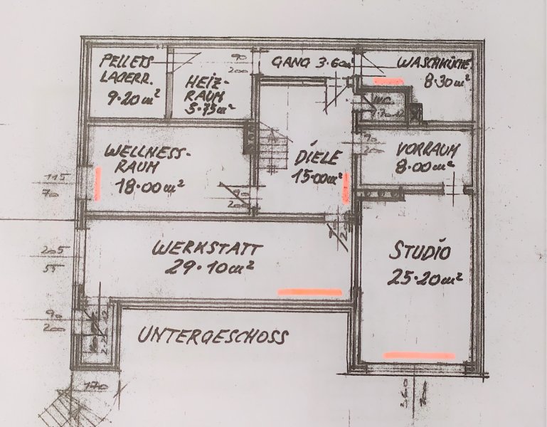 - weitere Räume befinden sich im Ober- sowie im Untergeschoss